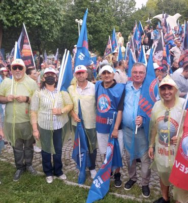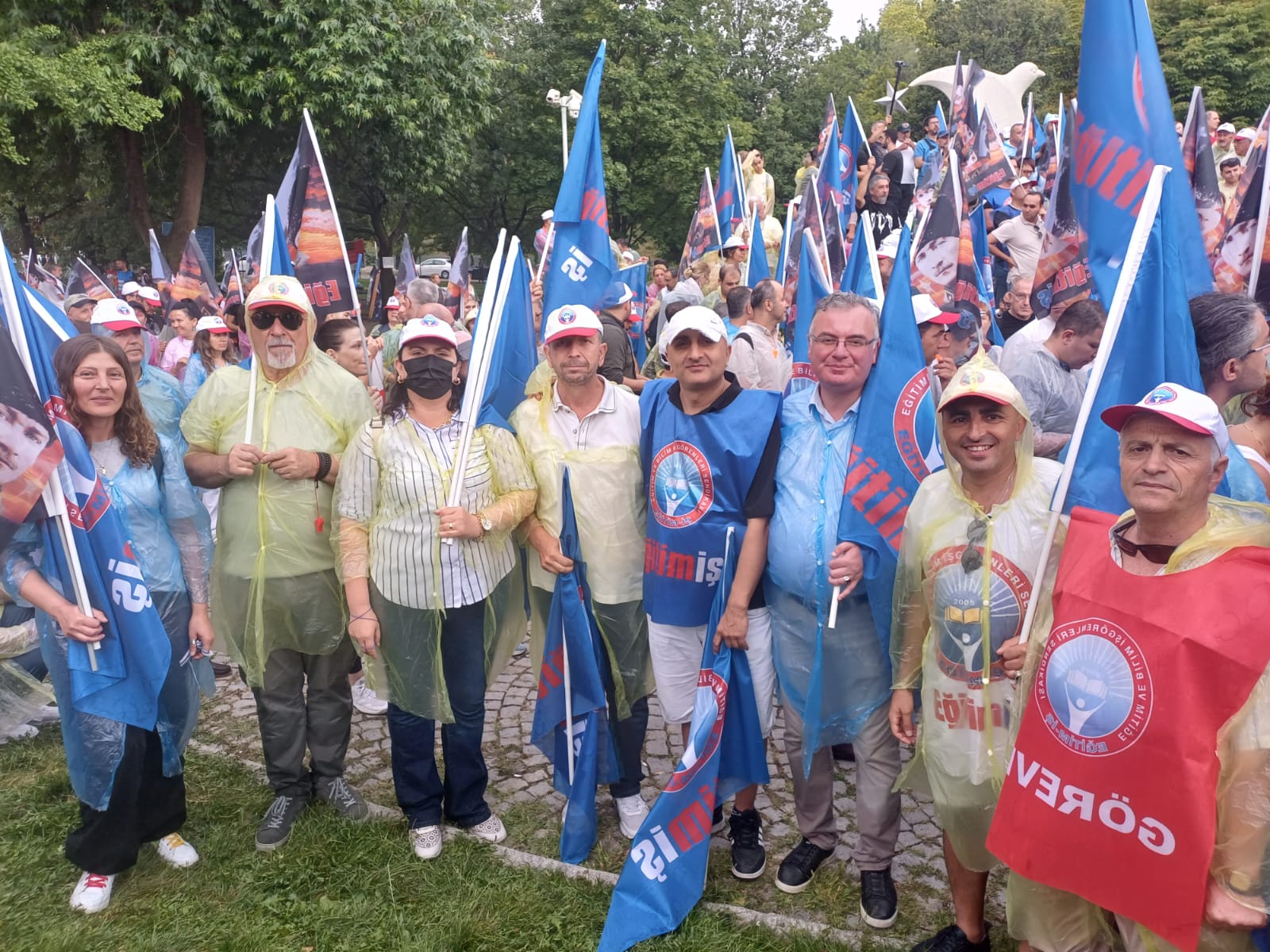 Saatler süren barikat engellerine karşı birlikte mücadele ederek, tarihte ilk kez Kızılay’a ulaştık, ancak Sıhhiye’de önümüz bir kez daha kesildi. Biz de halkın vekilleri ile beraber Eğitim İş’liler olarak Abdi İpekçi Parkı’nda oturma eylemi yaptık. Uzun süren müzakereler sonucunda barikatı bir kez daha aşıp, kurucu Meclisimiz olan 1. Meclis’e geç ve zor da olsa ulaştık. Eğitim İş Genel Başkanı Kadem Özbay basın açıklaması yaptı. Eğitim İş Sendikası olarak tüm engellere rağmen büyük yürüyüşümüzü son hedefimiz olan kurucu meclise ulaşarak tamamladık. Eğitim İş olarak meclisin karşındaki Milli Egemenlik Parkı’ndaki nöbet eylemlerimize devam edeceğiz” ifadelerine yer verdi.